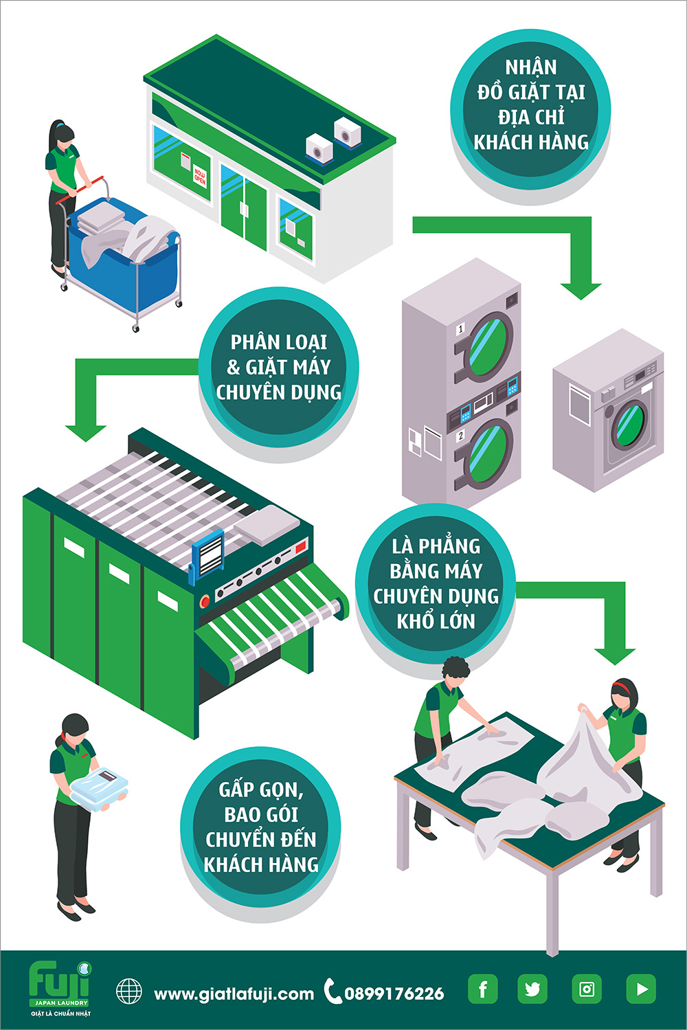 Cụ thể, Công ty giặt là Fuji, áp dụng quy trình “giặt là chuẩn Nhật”, với sự đa dạng về dịch vụ giặt là như: giặt khô là hơi, giặt đồ da, lông thú, gói gặt cao cấp… mang đến cho khách hàng nhiều sự lựa chọn thích hợp với từng loại trang phục khác nhau.