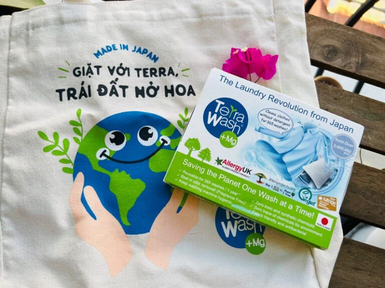 Chiếc túi giặt này có tên là Terra Wash + Mg là sản phẩm có xuất xứ từ Nhật Bản. Đây là một túi nhỏ hình chữ nhật có chứa thành phần là các hạt Magie nguyên chất, rất thân thiện với môi trường và được sử dụng thay thế hoàn toàn xà phòng, nước giặt.